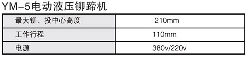 | 【產(chǎn)品名稱】:YM-5電動液壓鉚蹄機(jī) |
